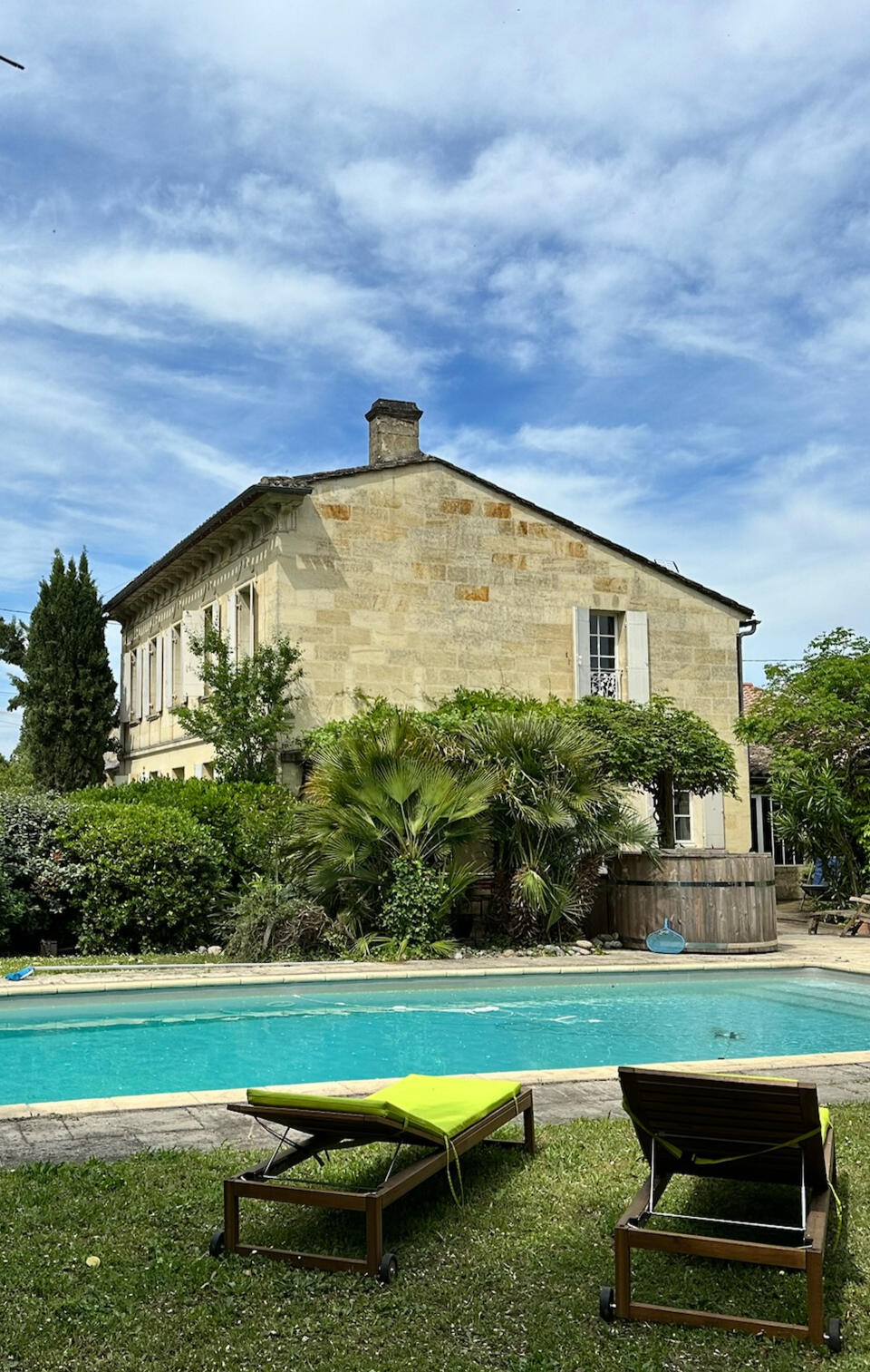 Au cœur des vignes.Une maison en pierre ouverte sur un jardin arboré,